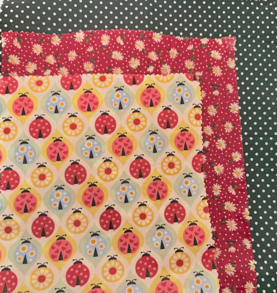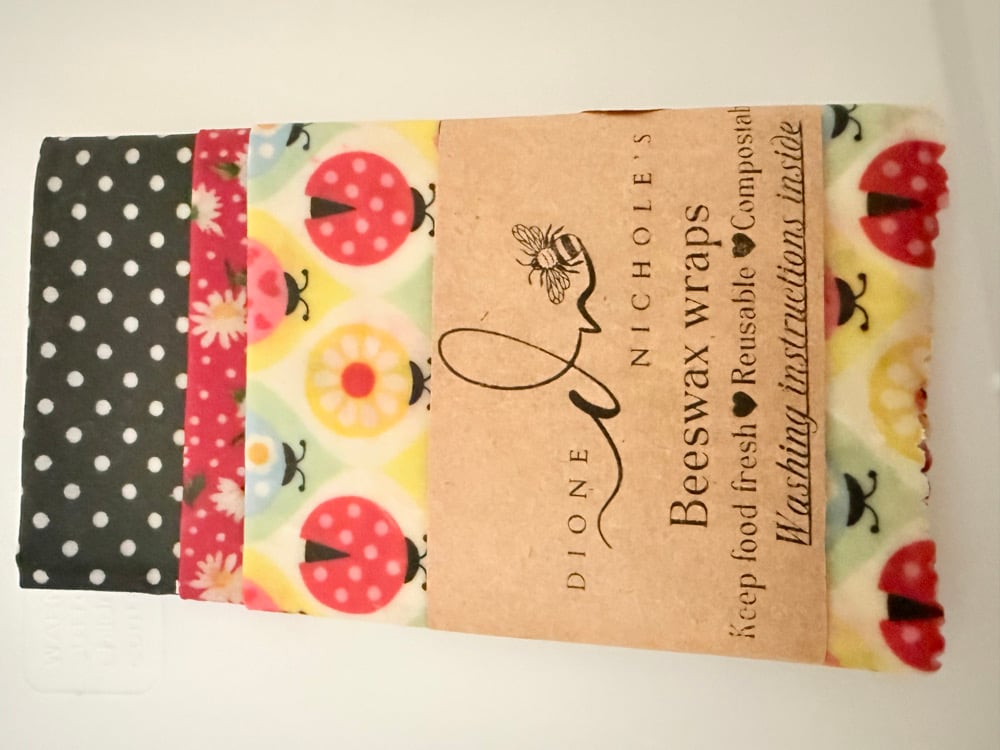 All natural compostable and reuseable beeswax wraps. Take the plastic out of your home one item at a time. Our natural ans antibacterial beeswax wraps take the place of sandwhich bags and plastic wrap. Fruits and vegetables last longer.